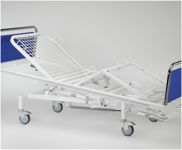 Przechyły Trendelenburga oraz anty-Trendelenburga dokonywane dźwignią umieszczoną pod leżem w sekcji nożnej, przy pomocy sprężyn gazowych. Szczyty łóżka wykonane z rur pokrytych powłoką niklowo-chromową, wypełnione wkładem z płyty tworzywowej, wodoodpornej, dwustronnie laminowanej. Układ jezdny stanowią cztery koła blokowane centralnie, w tym jedno z blokadą kierunkową (opcja) lub indywidualnie (standard).