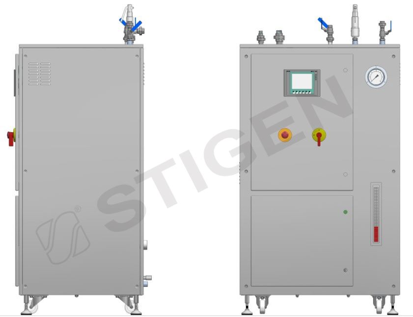 Wysoką czystość pary zapewnia również automatyczne odsalanie i odmulanie układu ciśnieniowego, a konstrukcja parownika z kopułą separującą na górze zwiększa suchość pary.