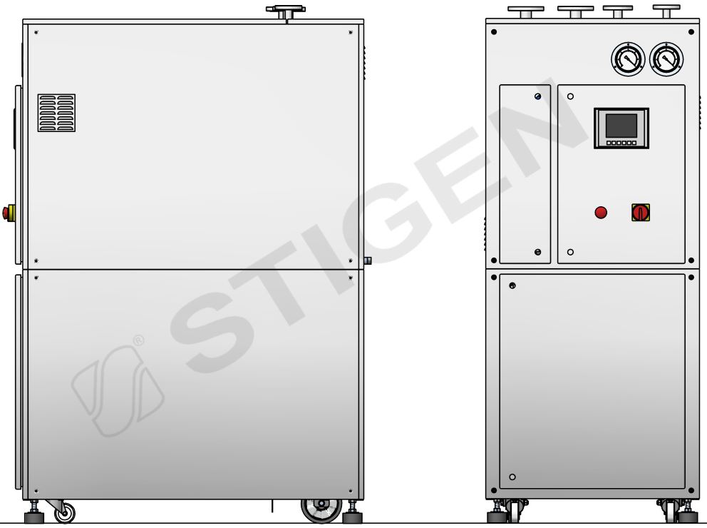 Wszystkie elementy ciśnieniowe mające kontakt z wodą zasilającą lub parą czystą wykonane są z wysokogatunkowej stali nierdzewnej AISI 316L (1.4404) i AISI 316Ti (1.4571). Konstrukcja oraz obudowa wykonana jest ze stali nierdzewnej AISI 304 (1.4301), a wysoka estetyka produktu i precyzyjnie wykonana obudowa (grubość 1,5 mm) pozwala na eksploatację urządzenia w strefach wymagających zachowania szczególnej higieny.