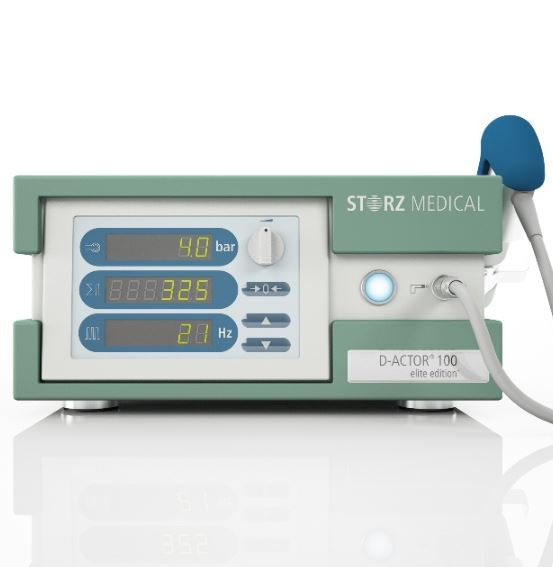D-ACTOR 100 Elite Edition to niezwykle wygodne, kompaktowe urządzenie wykorzystujące fale akustyczne "AWT™" zostało stworzone dla klientów, którzy cenią sobie estetykę wyglądu oraz dużą mobilność sprzętu. Wysokie moce wbudowanego kompresora zostały połączone z wygodą obsługi prostego panelu sterowania. Wyposażony w dwie głowice: głowica fali uderzeniowej i głowica fali wibracyjnej.