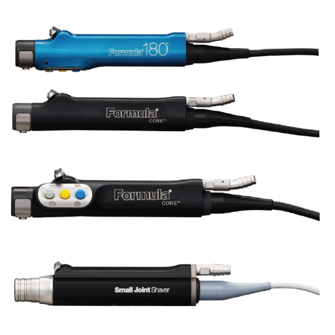 Rękojeść shavera Formula umożliwia kontrolę ssania i stanowi uzupełnienie dla sterowania nożnego używanego przez chirurga. Rękojeść shavera Formula oferuje dwie opcje rozmieszczenia przycisków, co umożliwia jednoczesne sterowanie przyciskami i ssaniem. Shaver do małych stawów Small Joint Shaver umożliwia dostęp do ciasnych miejsc i jest sterowany przełącznikiem nożnym.