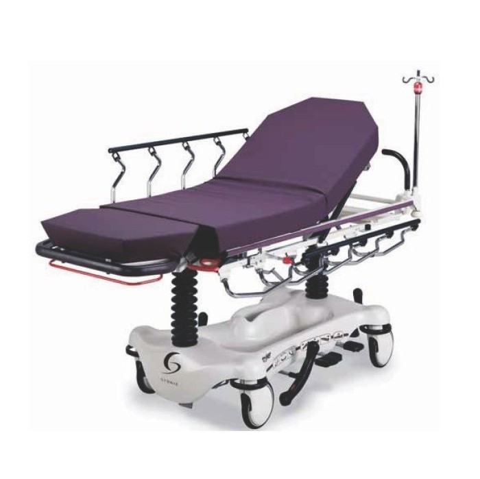 Hamulce w czterech kołach ze stalowymi pierścieniami oraz sterowaniem z obydwu stron wózka i od strony głowy poprawiają bezpieczeństwo platformy i zapewniają lepszy dostęp.