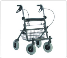 Charakterystyka: podpórka 4 kołowa ułatwiająca chodzenie; zawiera koszyk, siedzisko i tacę; wykonana ze stopu stali; składany, lekki; sztywne, mocne siedzisko; posiada ręczne hamulce i zdejmowany koszyk; sprzęt pomocniczo - rehabilitacyjny dla osób niepełnosprawnych ze schorzeniem narządu ruchu, z problemami pionizacji. Dane techniczne: maksymalne obciążenie: 120 kg, waga: 11,5 kg, regulacja wysokości: 780 - 940 mm, wysokość siedziska: 610 mm, szerokość: 580 mm.