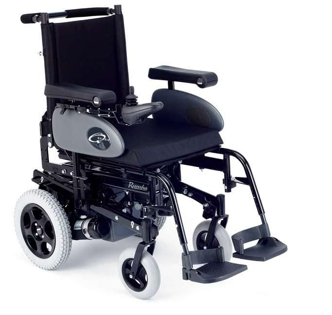 Quickie Rumba Modular. Uniwersalny i wszechstronny wózek elektryczny. Składany, łatwy do transportu. Mocna wytrzymała rama. Zdejmowane oparcie. Dostępne dwa rozmiary ramy: 42 cm i 48 cm. Regulacja szerokości siedziska: od 37 cm do 47 cm(rama 42 cm) i od 43 cm do 53 cm(rama 48 cm). Regulacja głębokości siedziska: od 42,5 cm do 50 cm. Regulacja kąta odchylenia oparcia: od 0o do 30o. Regulacja wysokości oparcia: od 48, 51, 53 cm. Wysokość siedziska: 50 cm. Regulacja wysokości podłokietników: od 22 cm do 30 cm. Promień skrętu 85 cm. Akcesoria: anatomiczne siedzisko, anatomiczne oparcie, zagłówek z regulacją wysokości, światła. Maksymalna waga użytkownika 125 kg. Maksymalna prędkość 6 km/h. Akumulatory:40 Ah/50Ah. Zasięg po pełnym naładowaniu akumulatorów: 25km/30 km.