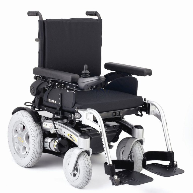 Quickie Salsa R. Kompaktowy wózek elektryczny z mocną i wytrzymałą ramą. Zdejmowane oparcie. Jedno siedzisko z pełną regulacją, zapewniające ponad 2 miliony kombinacji w ramach standardu. Pięć szerokości siedziska: 41cm, 43 cm, 46 cm, 48 cm, 51 cm. Pięć głębokości siedziska: 41 cm, 43cm, 46cm, 48 cm, 51 cm. Regulacja kąta siedziska: od 0odo 9o. Regulacja wysokości siedziska: od 37 cm do 46 cm. Regulacja kąta oparcia: od -4o do 16o. Regulacja wysokości oparcia: od 46 cm do 51 cm. Odchylane podłokietniki z regulacją wysokości i głębokości. Odchylane i zdejmowane podnóżki. Promień skrętu: 85cm/91cm. Maksymalna waga użytkownika: 140 kg. Maksymalna prędkość: 6 km/h. Akumulatory 60 Ah. Zasięg po pełnym naładowaniu akumulatorów: do 32km.