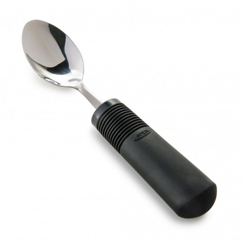 Wykonana ze stali nierdzewnej z uchwytem z czarnego tworzywa powlekanego gumą. Uchwyt ma spłaszczoną powierzchnię, co zapobiega możliwości obracania się sztućca w dłoni. Łyżeczkę można dostosować poprzez wygięcie końcówki w prawo lub w lewo. Stal z której wykonany jest widelec umożliwia wielokrotne wyginanie. Długość uchwytu 10 cm. Grubość uchwytu 30 mm.