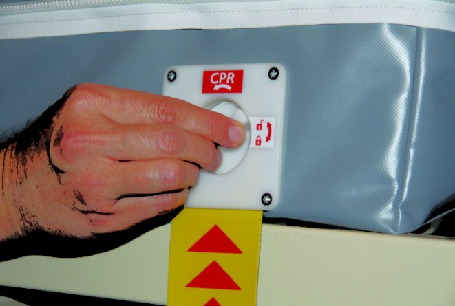 Wbudowany zawór PCR usuwa powietrze z materaca w celu umożliwienia procedury resuscytacji.