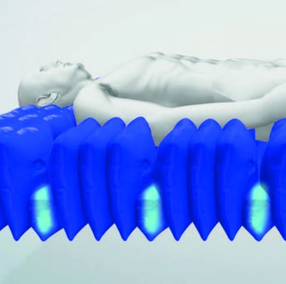 Specjalistyczny materac zmiennociśnieniowy przeciwodleżynowy dla pacjentów z II i IV ryzykiem odleżyn i z dolegliwościami bólowymi i pacjentów z zaburzonym przewodnictwem nerwowo-mięśniowym.