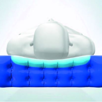 TISSUEgard umożliwia częściowe zanurzenie i odciążenie ciała pacjenta względem powierzchni nośnej, obniżając ucisk na skórę i zmniejszenie różnicy ciśnień pomiędzy powietrzem a deflowanymi komórkami, zmniejszając naprężenie tkanki i siły ścinające pacjenta.