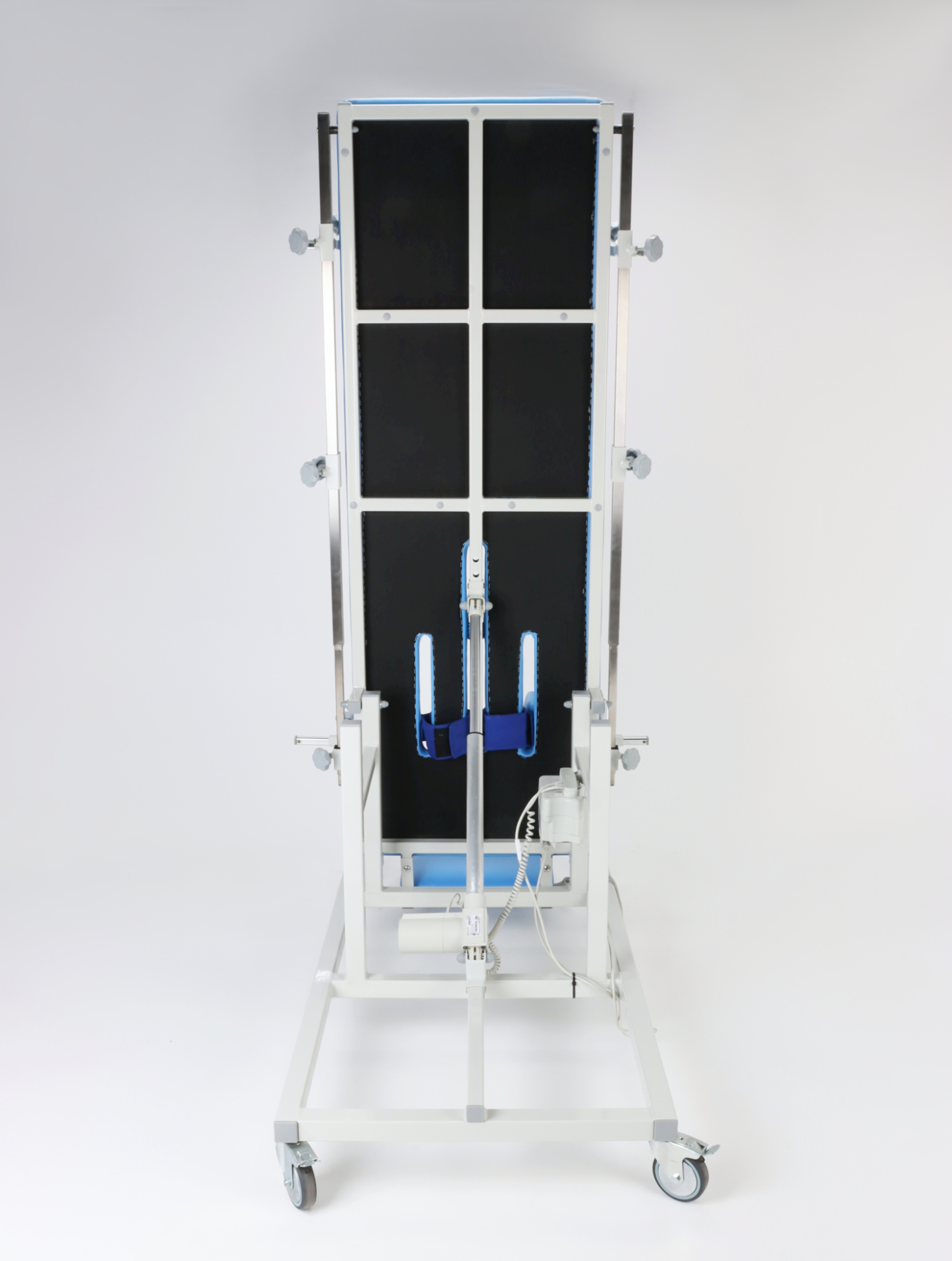 - Pozwala na bezpieczną stabilizację i pionizację pacjenta dzięki wytrzymałej konstrukcji,