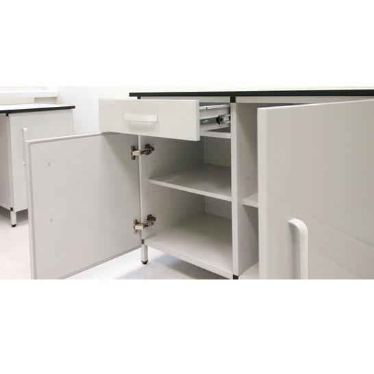 Seria mebli ALUMED PLUS opiera się na konstrukcji szafek bazujących na zamkniętych profilach aluminiowych, malowanych proszkowo farbą epoksydowo–poliestrową lub poliestrową.