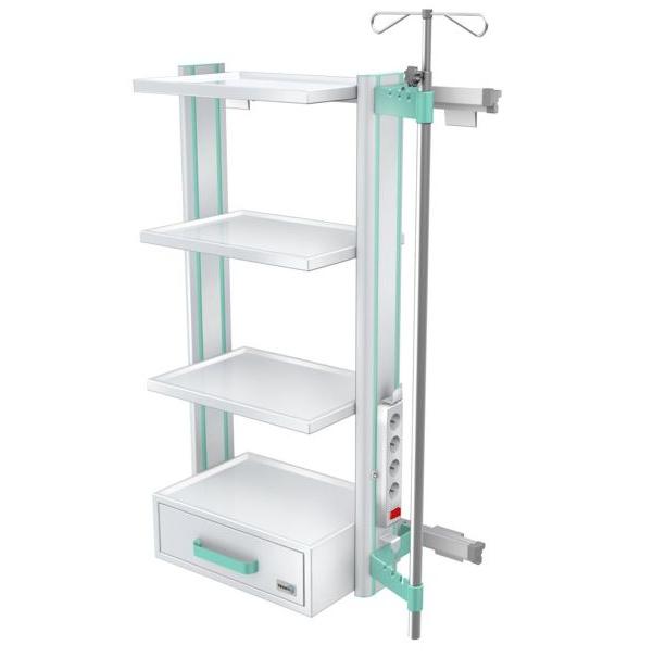 Konfiguracja zestawu półkowego według indywidualnego zapotrzebowania Zamawiającego. Montaż na szynę instrumentalną.