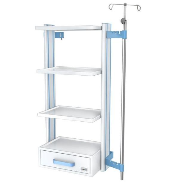 Konfiguracja zestawu półkowego według indywidualnego zapotrzebowania Zamawiającego. Montaż na szynę instrumentalną.