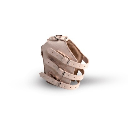Kamaszek ze skóry KC/14/S. Kamaszek do ćwiczeń oporowych stopy wykonany ze skóry zapinany na 3 paski skórzane z klamrami. Posiada sześć półkoli do podwieszeń.