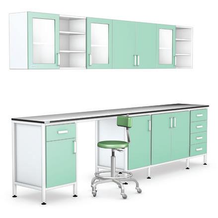 Głównym elementem stanowiska laboratoryjnego jest stół roboczy. Odpowiedni rodzaj blatu i dobór akcesoriów decydują o komforcie pracy. W celu funkcjonalnego wykorzystania przestrzeni wokół blatu wyposażenie stanowią: szafki stojące, szafki wiszące, zestaw szuflad, nadstawki. Blaty laboratoryjne wykonywane są z różnych materiałów, w zależności od właściwości fizycznych i chemicznych, a przede wszystkim od stopnia odporności na substancje chemiczne. Dobór właściwego blatu zależy od specyfiki pracy w laboratorium.
