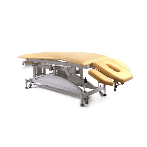 Stół do masażu 5 segmentowy SM-H-Ł z hydrauliczną zmianą wysokości leżyska (łamany) znajdzie swoje zastosowanie w gabinetach masażu jak i rehabilitacji. Jest to produkt wysokiej jakości, wykonany z należytą dbałością o każdy szczegół. Wysokoodporna tapicerka jest winylowa a podstawa wykonana ze stalowych profili malowanych proszkowo.