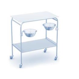Wyposażenie stolika zabiegowego: 2x blat, 2x uchylna miska