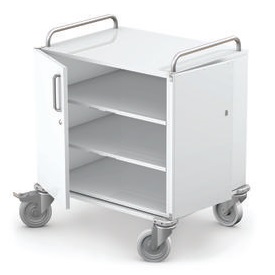 Szafki serii WT wykonano w całości ze stali lakierowanej proszkowo lub ze stali kwasoodpornej gat. 0H18N9, wyposażono w koła o średnicy 200 mm.
