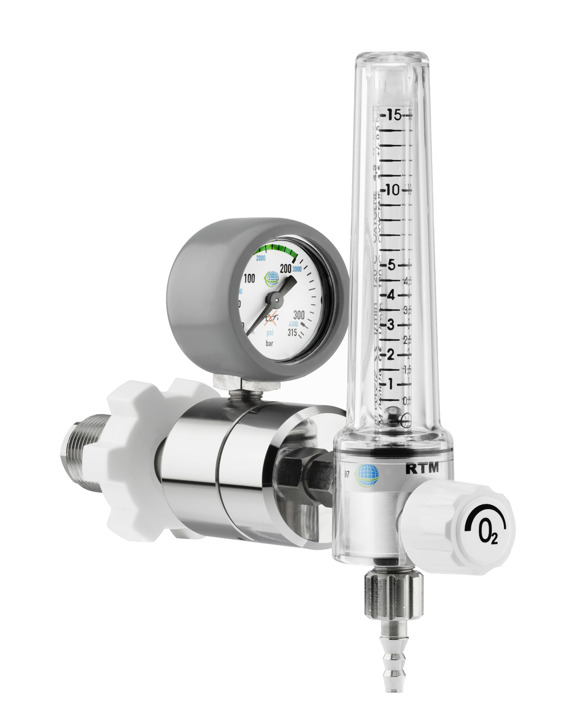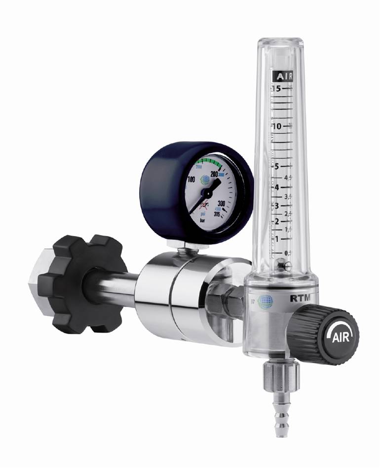 Reduktor do tlenu/powietrza z dozownikiem montowany na butle, o płynnej regulacji przepływu z możliwością podłączenia nawilżacza.