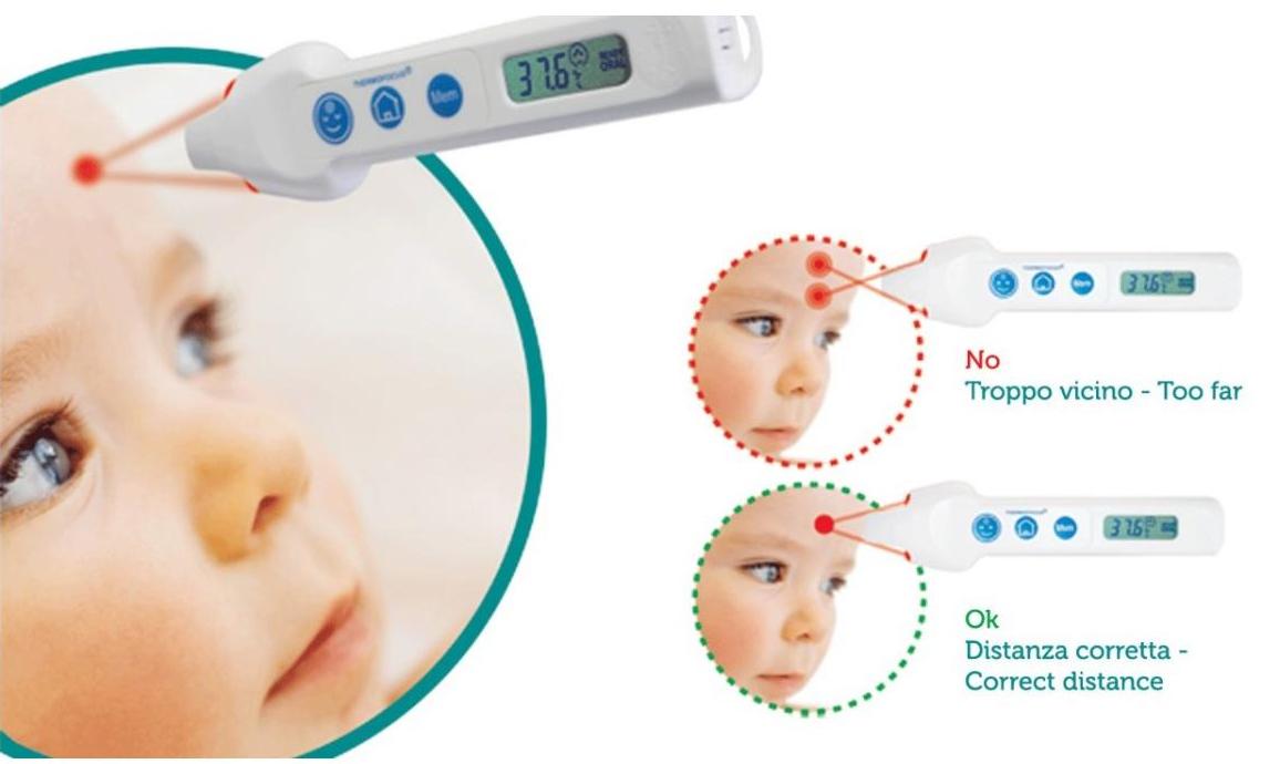 - W przypadku, gdy dziecko porusza się, płacze lub ma spocone czoło, możliwy jest pomiar na pępku lub szyi, tuż poniżej uszu