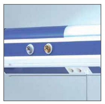• Zaokrąglony kształt górnego profilu umożliwił zastosowanie dwóch równoległych lamp do pośredniego oświetlenia, niższy profil natomiast przeznaczony jest do gniazd elektrycznych  i światła bezpośredniego.