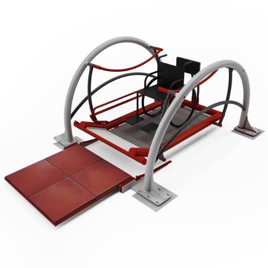 Najazd na podjazd zaleca się tyłem. Następnie po dojechaniu do oparcia należy zamontować pas zabezpieczający i wyhamować wózek. Kolejna czynność to podniesienie podjazdu przy pomocy dźwigni i tym samym zwolnienie huśtawki. Zabawa odbywa się poprzez odpychanie od relingów umieszczonych po obu stronach platformy. Oprócz huśtania, czynność wpływa również na wzmocnienie kończyn górnych. Zabawa może odbywać się samodzielnie lub z udziałem opiekuna. Z huśtawki mogą również korzystać dzieci pełnosprawne.