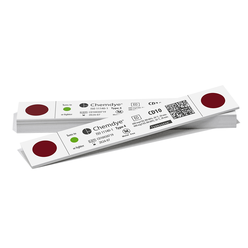 Wielofunkcyjny wskaźnik chemiczny, paski z nadrukowanym tuszem wskaźnikowym (105 x 18 mm), do procesów sterylizacji tlenkiem etylenu.