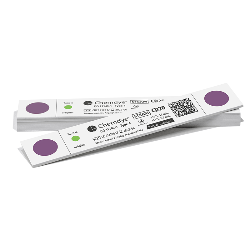 Wskaźnik chemiczny wielu zmiennych, paski z nadrukowanym tuszem wskaźnikowym (105 x 18 mm) do procesów sterylizacji parą wodną.