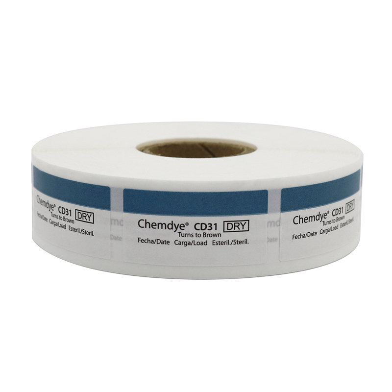 Wskaźnik chemiczny, samoprzylepna etykieta zadrukowana tuszem wskaźnikowym (33x 17 mm), do procesów sterylizacji suchym gorącym powietrzem.