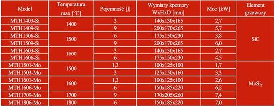 - opcje temperaturowe: 1400 stopni C, 1500 stopni C, 1600 stopni C, 1700 stopni C oraz 1800 stopni C