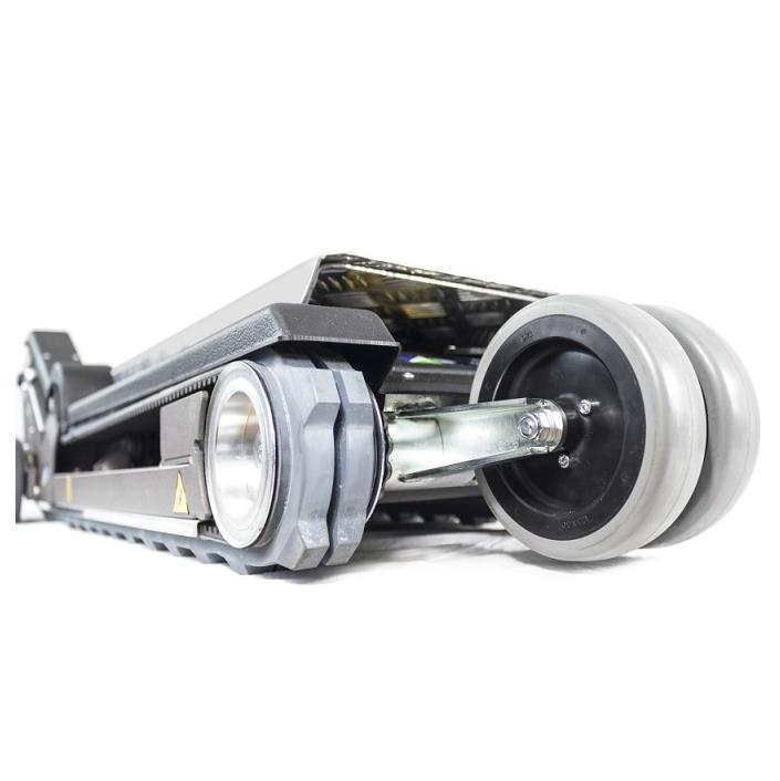 Maksymalne obciążenie, na jakie pozwala ten schodołaz z rampami, to aż 150 kg przy wadze urządzenia wynoszącej zaledwie 71 kg. Niezwykle stabilna konstrukcja oraz zastosowanie najnowocześniejszych, najwyższej jakości materiałów, to gwarancja bezpieczeństwa i komfortu. Co więcej, producent wyposażył ten schodołaz dla wózków aktywnych w negatywny elektromagnetyczny hamulec o mocy 12V.