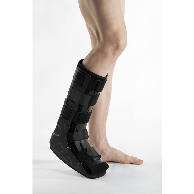 But marszowy składa się z szyny (w kształcie buta) wykonanej z wytrzymałego i lekkiego PCV oraz miękkiego materiału piankowego obszytego tkaniną CoolMAX stanowiącego wewnętrzną wyściółkę. Tkanina ta poprzez swoją strukturę umożliwia stały dostęp powietrza do skóry pacjenta oraz odprowadza nadmiar ciepła i wilgoci. Orteza wyposażona w system pasów obwodowych w celu indywidualnego dopasowania siły stabilizacji oraz profilowaną podeszwę z materiałem antypoślizgowym. Należy do wyrobów medycznych stosowanych w celu ustabilizowania stopy i podudzia w położeniu pośrednim w stanach pourazowych w obrębie stawów skokowych.