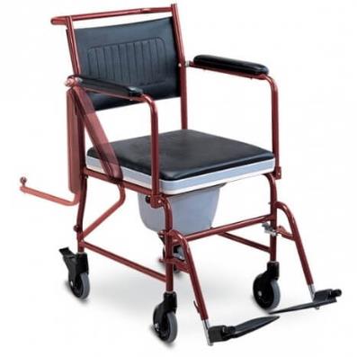 Wózek toaletowy transportowy wykonany z stalowej, malowanej proszkowo ramy. Posiada uchylne podłokietniki umożliwiające łatwe wsiadanie i zsiadanie dla osób o znacznie obniżonej sprawności ruchowej. Wyposażony w miękkie siedzisko, tapicerowane nieprzemakalnym i łatwym w czyszczeniu materiałem, cztery obrotowe koła, z których tylne posiadają hamulce, uchylne podnóżki, pojemnik sanitarny. Dzięki swojej konstrukcji można nim najeżdżać na sedes. Łatwy w transporcie dzięki składanej ramie.