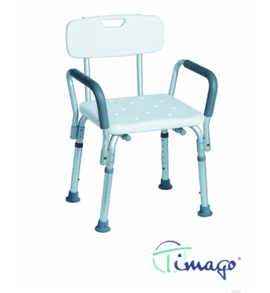 Taboret prysznicowy z oparciem i uchwytami bocznymi wykonany z aluminiowej ramy oraz siedziska z oparciem wykonanych z wytrzymałego PCV. Poprzez wykorzystanie bocznych uchwytów pokrytych materiałem piankowym znajduje zastosowanie dla pacjentów z trudnościami w stawaniu i siadaniu. Posiada regulowane na wysokość nóżki zakończone gumowymi nasadkami antypoślizgowymi, demontowane oparcie oraz system TF.