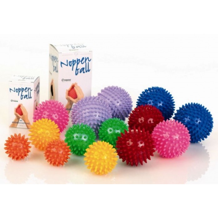 Kolorowe piłeczki z miękkimi wypustkami sensorycznymi w kilku rozmiarach. Wyposażone są w wentylek umożliwiający zmianę ich twardości. Służą do ćwiczeń, masażu, pobudzania stref reflektorycznych oraz miejscowego pobudzania krążenia.