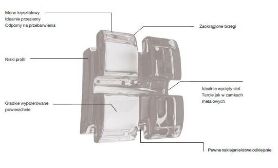 Niski profil zamków zapewnia komfort pacjenta a anatomicznie profilowana baza zarówno łatwe naklejanie jaki i odklejanie zamków. Dzięki optymalnej szerokości mezjalno- dystalnej zamków uzyskujemy doskonałą kontrolę rotacji. Zredukowane tarcie oferuje mechanikę ślizgową porównywalną z tą w zamkach metalowych.