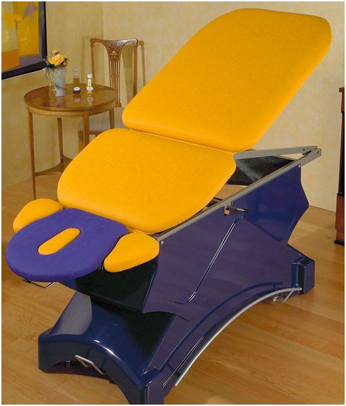 Łóżko do terapii i wellnes z elektryczną regulacją wysokości leżyska.