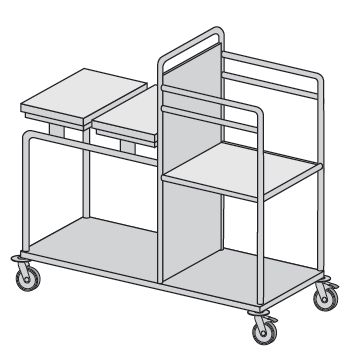 Wózek zbieracz do czystej i brudnej bielizny podwójny. Przeznaczone do gromadzenia i transportowania brudnej pościeli. Wykonane w wersji otwartej lub zamykane pokrywą. Pokrywy ze stali nierdzewnej satynowanej lub lakierowanej na żądany kolor. Standardowo na wyposażeniu bawełniane worki z oznaczeniem kolorystycznym.