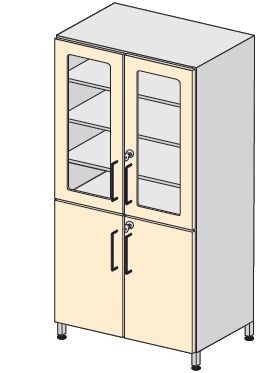 Szafa opatrunkowa – lekarska czterodrzwiowa z oszkloną górą.