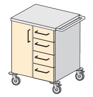 Wózki i stoliki medyczne przeznaczone do transportowania i przechowywania środków medyczno-opatrunkowych oraz innych materiałów pomocniczych. Wyposażone standardowo w wysokiej jakości zespoły jezdne o średnicy Ř100 i Ř125 mm oraz odboje zabezpieczające wyrób i otoczenie przed uszkodzeniem. Na życzenie Zamawiającego wózki i stoliki mogą być wyposażone w specjalistyczny sprzęt pomocniczy opisany na stronach 169-175 katalogu. Standardowo blaty płaskie lub na życzenie Zamawiającego zagłębione, wyposażone w dodatkowe relingi zabezpieczające przewożone materiały przed wypadnięciem lub zsunięciem. W opcji zamek centralny i patentowy jednopunktowy.
