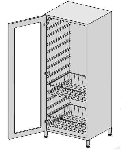 Szafa do składowania 7 koszy w systemie ISO-NORM 1 wielkości wsadu lub 14 koszy ISO-NORM 1/2 wielkości wsadu.