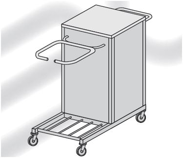 Wózek do przewożenia czystej i brudnej bielizny ze stelażem otwartym ze stali nierdzewnej kwasoodpornej. Wyposażenie: – dwie półki.