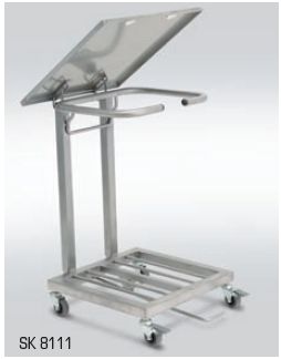 Stelaże na odpady medyczne. Przeznaczone do gromadzenia i transportowania odpadów komunalnych i skażonych.