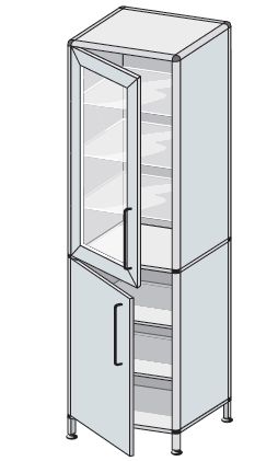 Szafa opatrunkowo-zabiegowa przeszklona górą.