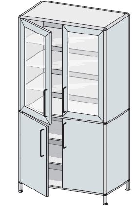 Szafa opatrunkowo-zabiegowa przeszklona górą.