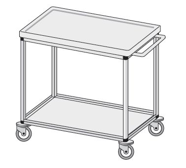 Stolik opatrunkowo-zabiegowy. Stoliki zabiegowe są wykonane w różnych konfiguracjach wymiarowych i rodzajowych. Standardowo wyposażone w zespoły jezdne z blokadą ruchu i obrotu oraz z odbojami zabezpieczającymi stolik i elementy otoczenia przed uszkodzeniem. Blaty robocze z tworzywa ABS standardowo wykonane jak pokazano na poniższych schematach z krawędzią boczną podniesioną lub bez krawędzi bocznych. Na życzenie Zamawiającego blaty mogą być wykonane z innych materiałów.