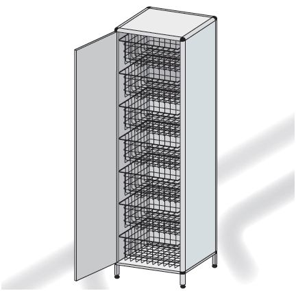 Szafa opatrunkowo-zabiegowa z koszami. Wyposażenie: – kosz typ A-02 lub kuweta typ AA-12 – 7 szt. L=538, B=500, H=180 mm.