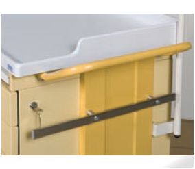 Szyna sprzętowa W 202. Do zawieszenia akcesoriów wyposażenia specjalistycznego. Wykonana z kształtownika aluminiowego o wymiarach 25×10 mm. Możliwość mocowania do kolumn nośnych wózka z obu stron. Konstrukcja umożliwia samodzielny montaż i demontaż. Obciążenie maksymalne 50 N/5 kg. Długość użytkowa 500 mm.