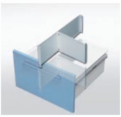 Wkład do szuflady wysokiej. Metalowy lakierowany techniką proszkową w kolorze białym. Konstrukcja umożliwia samodzielny montaż i demontaż oraz zmianę podziału szuflady jak W 236.