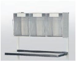 Półka dostawiana górna. Ze stali kwasoodpornej W 241 z dozownikiem trzyskrzynkowym na materiały opatrunkowo-zabiegowe. Skrzynki uchylne w wymiarze (szer. × gł. × wys.) 175×145×220 mm. Wysokość półki nad blatem roboczym 280 mm. Wymiary półki (szer. × gł.) 590×280 mm.